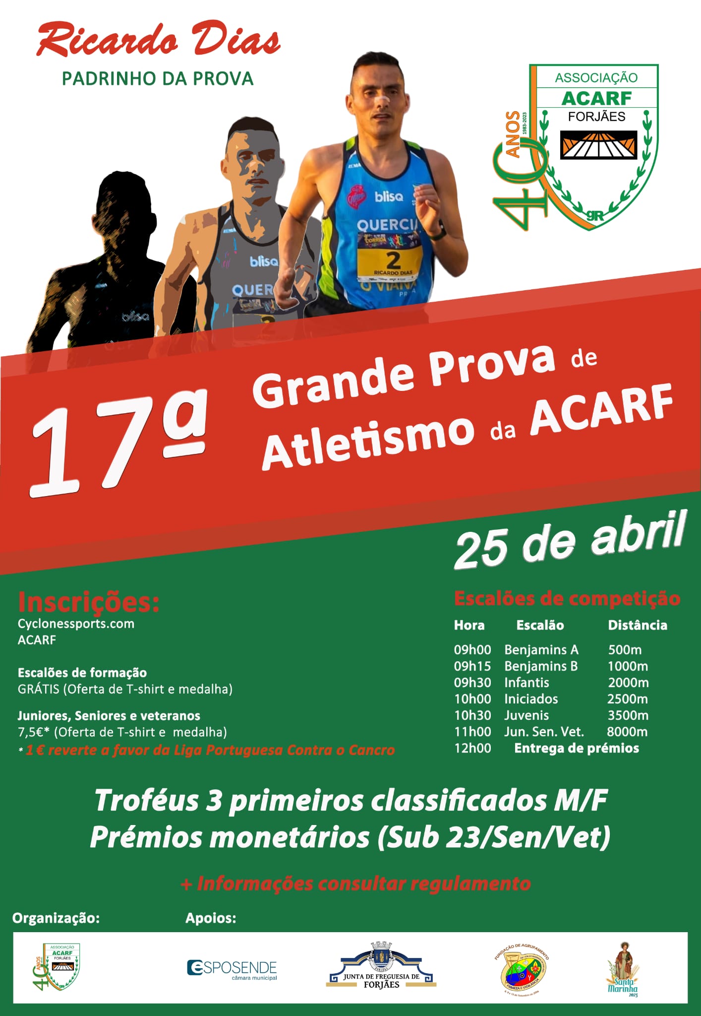 Associação Social Cultural Artística e Recreativa de Forjães, ACARF, vai realizar, dia 25 de abril, a sua XVII Grande Prova de Atletismo.