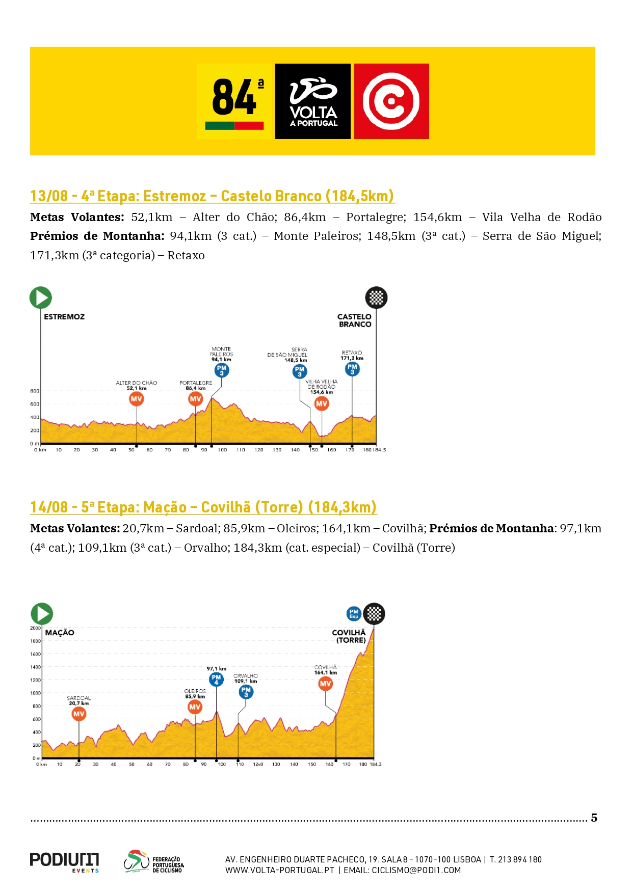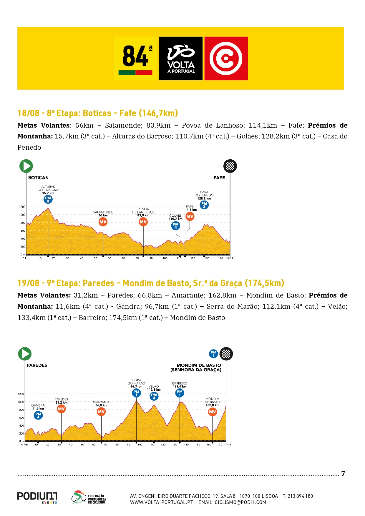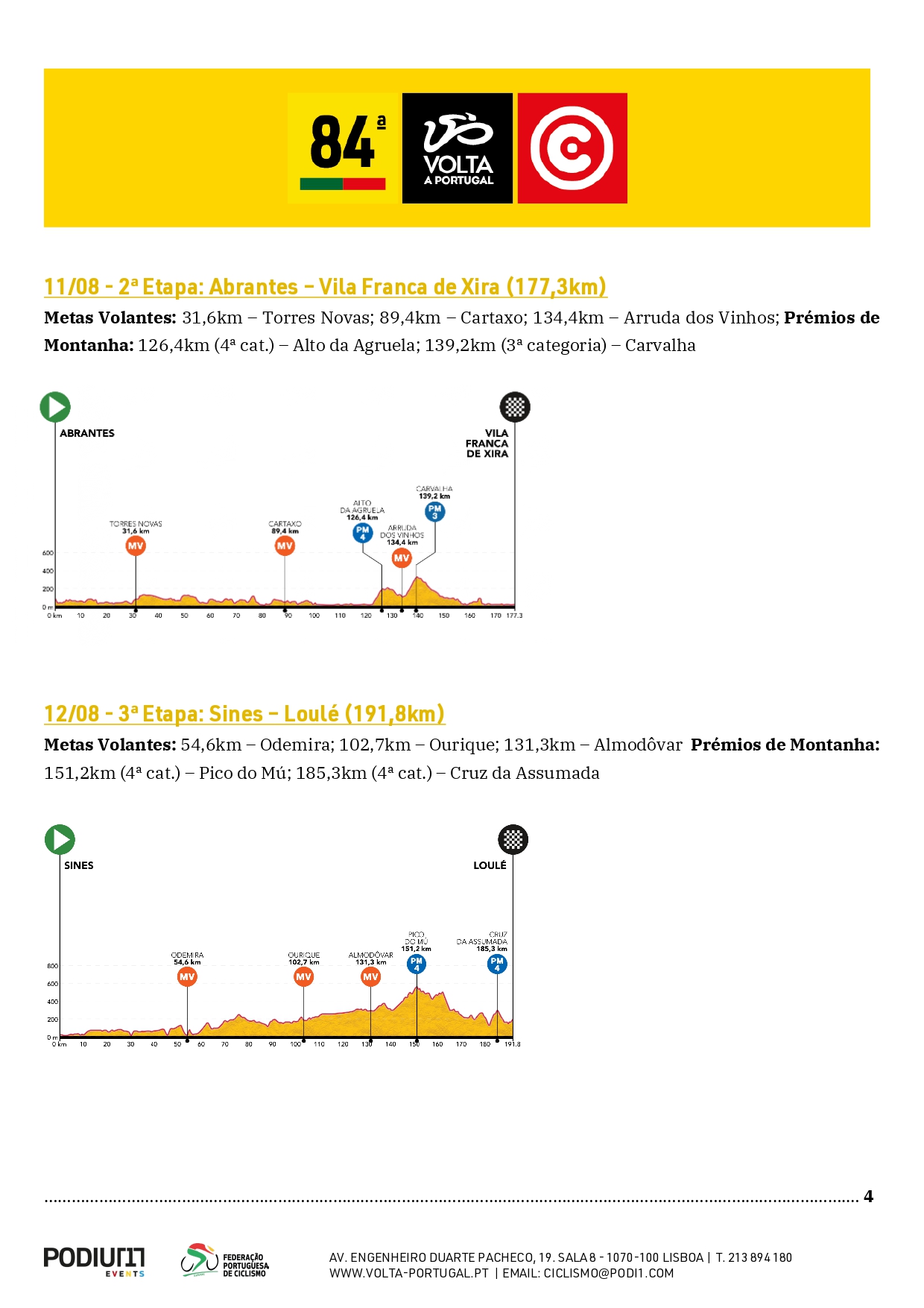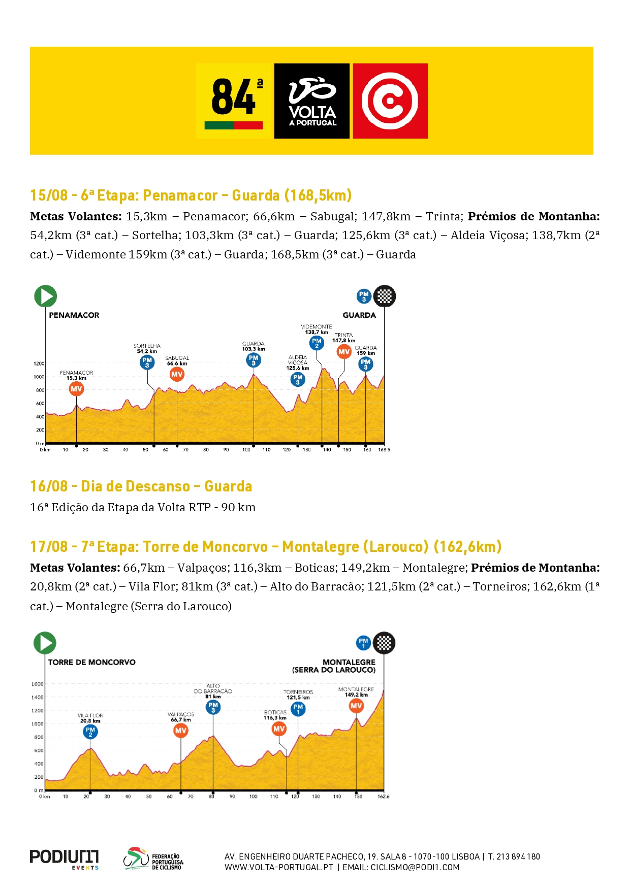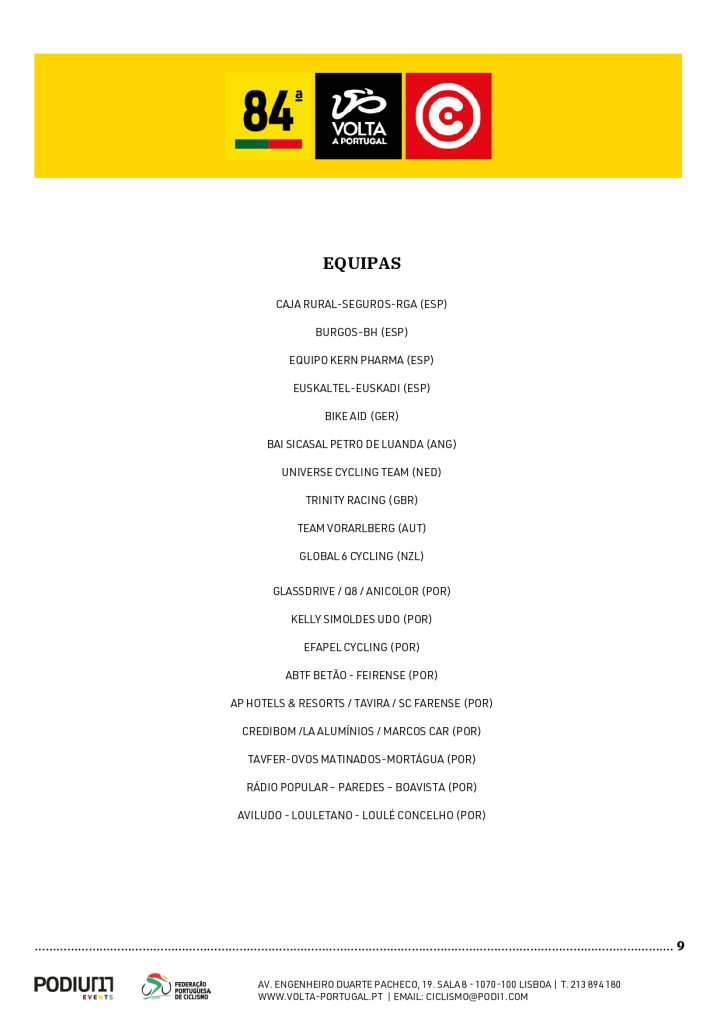 Quem sucederá a Maurício Moreira como vencedor da 84ª edição da Volta a Portugal Continente? A resposta a esta pergunta será uma incerteza até ao último dia em Viana do Castelo, esperando que mais uma vez, a Volta a Portugal cumpra o seu desígnio de maior evento desportivo do verão em Portugal, exerça o seu papel de melhor ferramenta de promoção territorial e ainda de valorização da vida ativa e