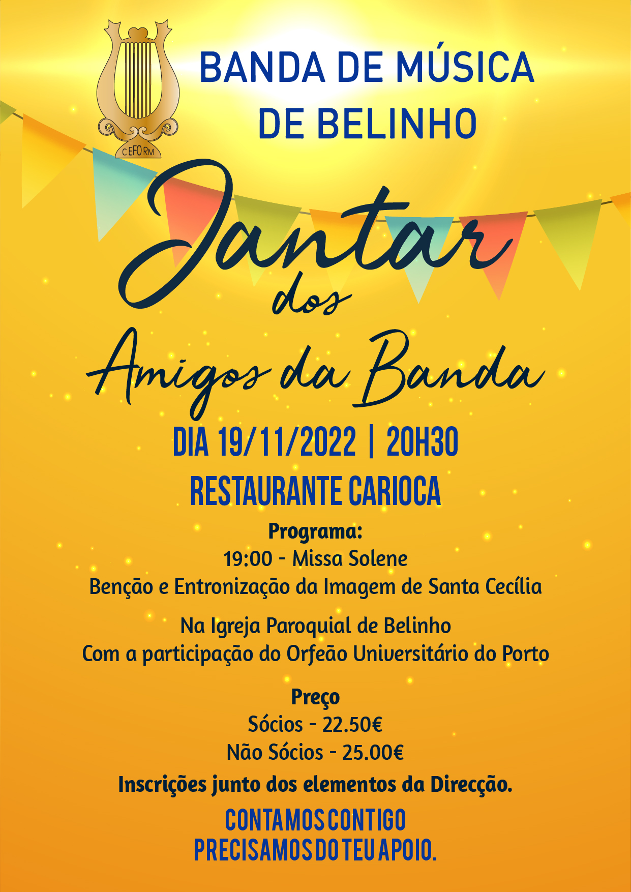 No dia 19 Novembro (final Missa-Concerto), realiza-se o Jantar dos Amigos da Banda, no restuarante Carioca em Belinho.