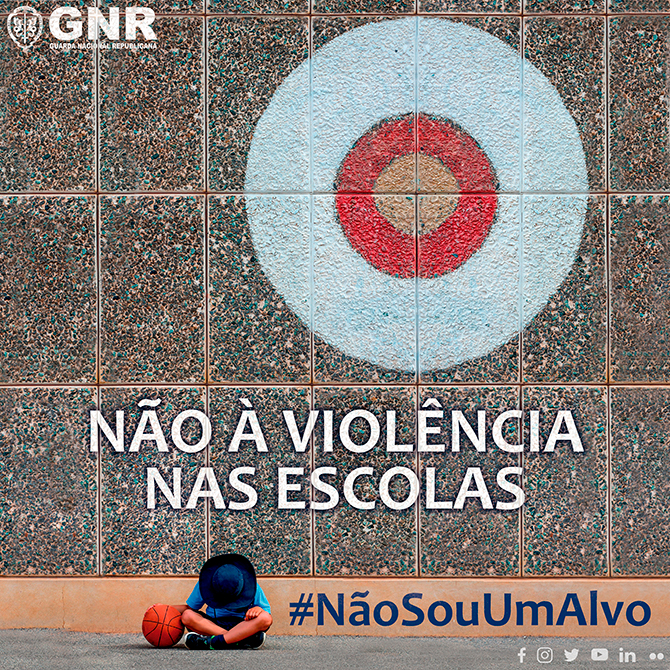 Visando contribuir para a prevenção e para o combate à violência em ambiente escolar, hoje, dia 30 de janeiro, dia em que se comemora o Dia Internacional da Não Violência e da Paz nas Escolas, a Guarda Nacional Republicana lança a campanha nacional de sensibilização #NãoSouUmAlvo, materializada pela exposição e divulgação da imagem em anexo nas plataformas digitais e que será exposta em centenas de locais de norte a sul do país, assim como a divulgação do vídeo, que pode ser visualizado aqui.