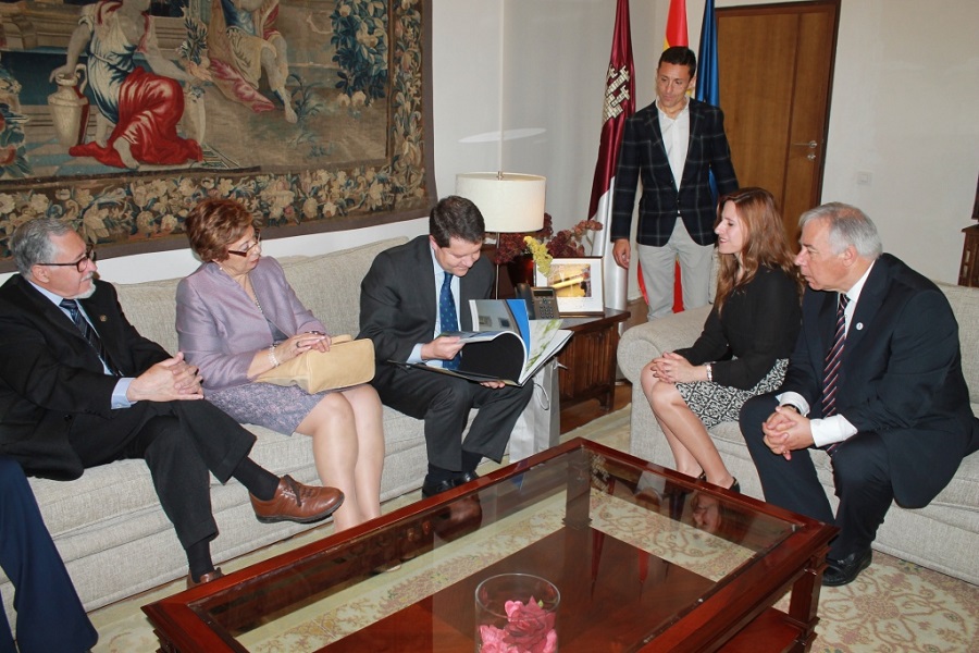 Assim, na sexta feira, a delegação hispano-lusa, constituída pela comitiva esposendense e pela Presidente, Vice-Presidente e Tesoureiro da Hermandad de Toledo, respectivamente, Begoña Sánchez, Ángel Cepeda e Francisco Javier, marcou encontro com o Presidente do Gobierno Autonómico de Castilla la Mancha, Emiliano García-Page Sánchez, a quem agradeceu o empenho e a colaboração concedida neste intercâmbio e troca de experiências entre as duas comunidades, iniciado ao tempo em que era Alcalde do Ayuntamiento de Toledo, e prosseguido até aos dias de hoje. Adelino Marques, aproveitou ainda a oportunidade para oferecer ao Presidente do Gobierno a medalha da associação e expressar a vontade de o ver, de novo, em Esposende. Raquel Vale, em nome do Município, agradeceu a recepção e ofereceu um livro sobre Esposende. Por sua vez, Emiliano García-Page, um amigo de Portugal, e em especial de Esposende, brindou os presentes com produtos de Castilla-La Mancha, prometeu continuar a apoiar este intercâmbio e reiterou o desejo de revisitar o concelho de Esposende, se possível, no próximo mês de Agosto. Seguidamente, proporcionou uma visita guiada ao Palácio de Fuensalida, sede actual do Gobierno Autonómico e antiga residência de Isabel de Portugal, Rainha de Espanha, por casamento com o Rei Carlos I, e mais tarde, Imperatriz do Sacro-Império Romano-Germânico, quando Carlos I se tornou Imperador do mesmo, como Carlos V. Isabel de Portugal, filha de D. Manuel I e de Maria de Aragão e Castela, nascida em 1503, “a mulher mais bela do seu tempo”, veio a falecer, por complicações de parto, em 1 de maio de 1539, neste Palácio de Fuensalida, onde se encontra, em lugar de destaque, uma bandeira do reino português dessa época.