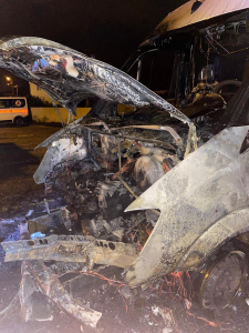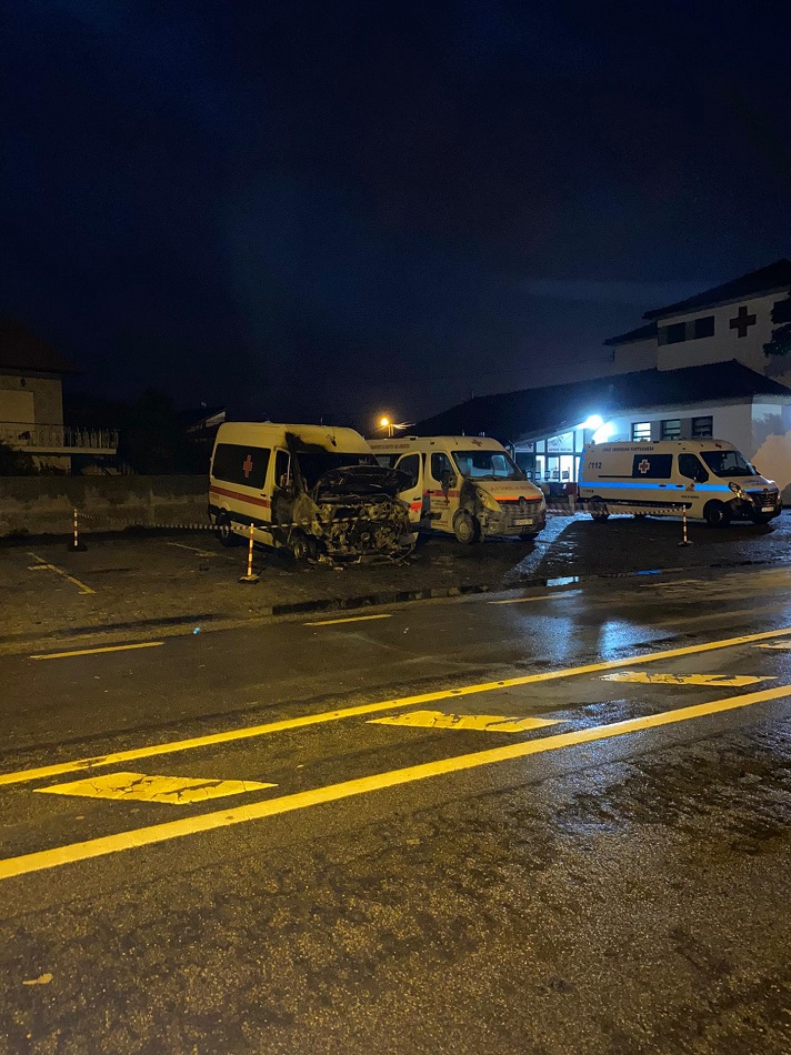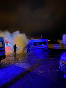 Do incêndio resultou a perda total de uma ambulância e uma segunda com danos significativos.
