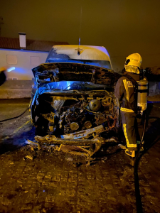 Cerca das 05.30h da manhã de hoje, um automobilista que passava na E.N.13 frente ao parque de estacionamento da Cruz Vermelha de Marinhas, comunicou às autoridades que uma ambulância estava em chamas.