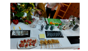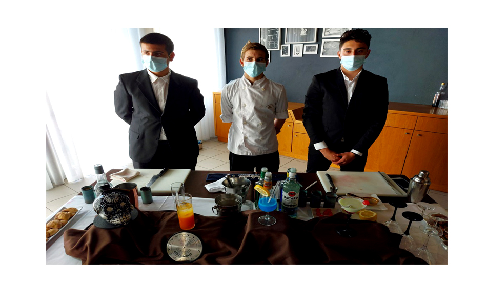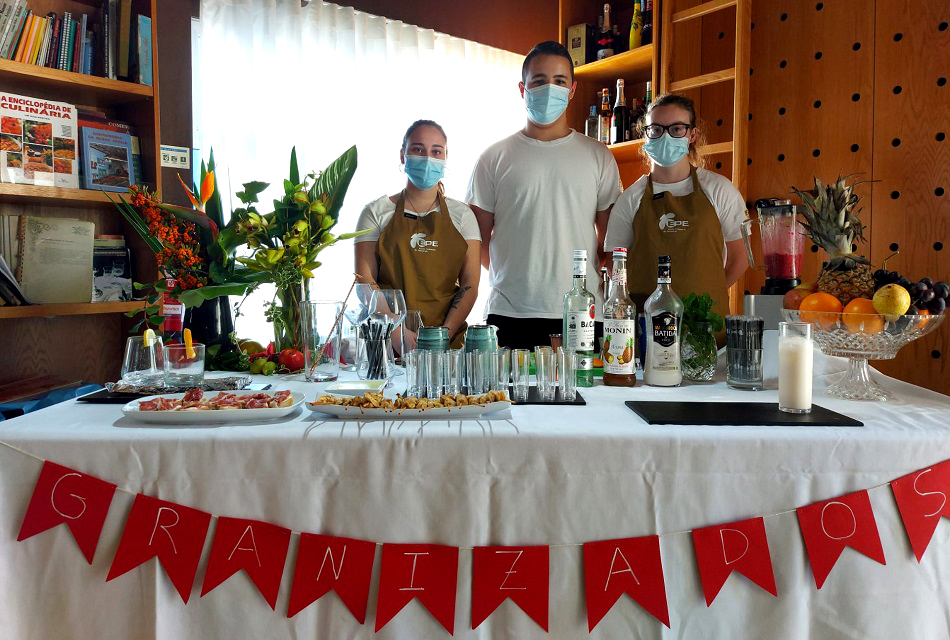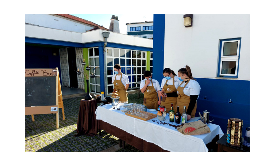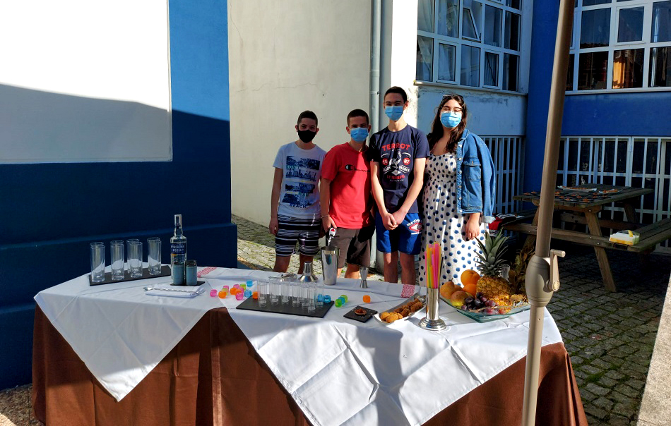 Com efeito, cada grupo, constituído por quatro elementos, quer da cozinha, quer da sala, preparou uma Box temática, abarcando, desde: o Bar Clássico, passando pelo Café, Granizados, Long Drinks, Caipirinhas e terminando na “Mimosas”. Assim, durante toda a manhã, a comunidade escolar, dividida em pequenos grupos, respeitando o distanciamento social, provou e deleitou-se com as iguarias confecionadas pelos futuros técnicos de restauração. Este idealizaram, também, um passaporte que foi oferecido aos alunos que passaram por cada box, carimbando a sua passagem pelos diversos bares. Em simultâneo, a turma gravou um vídeo para ser apresentado, no dia 27 de novembro, no Dia do Estudante da Gastronomia, iniciativa desenvolvida no âmbito do Concurso Jovem Talento da Gastronomia, a realizar em março, do próximo ano.