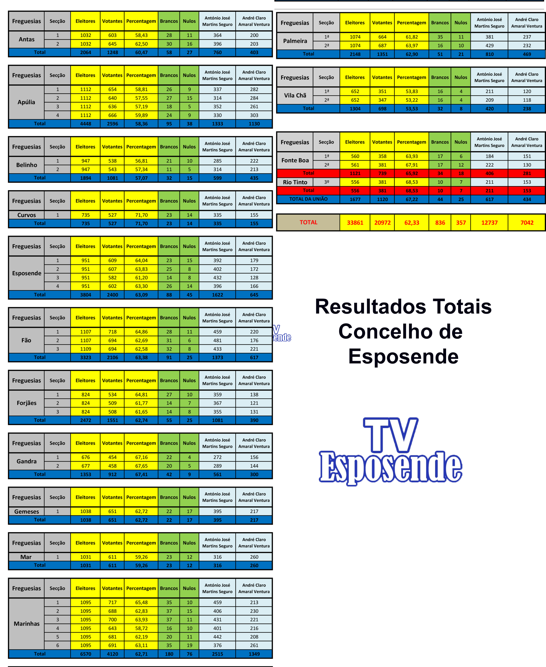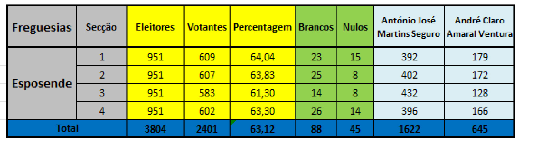 Resultados Eleições Presidenciais 2026 no concelho de Esposende: