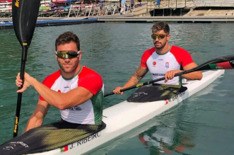 João Ribeiro e Messias Baptista conquistaram a medalha de ouro em K2 500 metros no Campeonato do Mundo em Duisburgo, na Alemanha e garantem presença nos Jogos Olímpicos de Paris 2024. Fotos: Federação Portuguesa de Canoagem ...