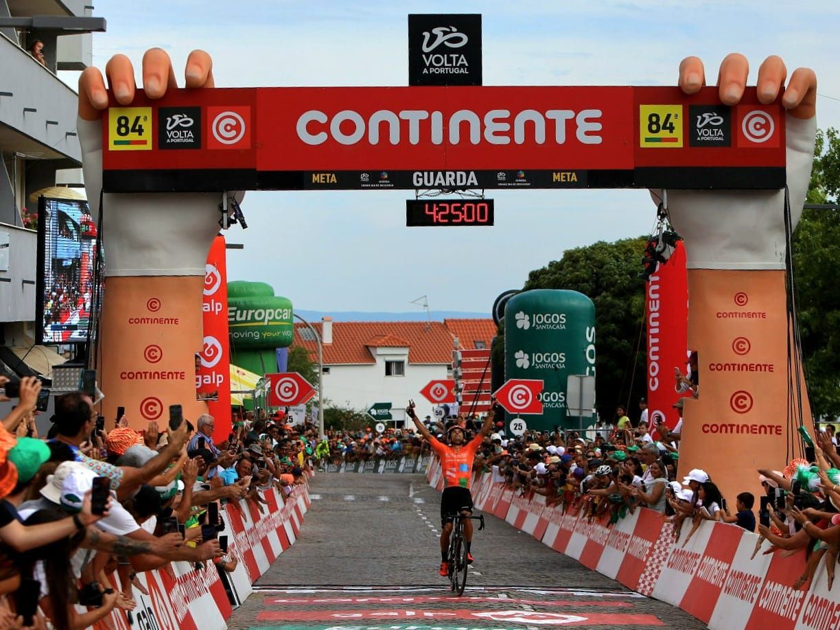 | Faltavam menos de 150 metros para a meta quando o espanhol Luis Angel Maté (Euskaltel-Euskadi) disparou para a vitória deixando, Artem Nych (Glassdrive/Q8/Anicolor), com quem lutara nos últimos quilómetros, agarrado ao chão. Mate, tranquilo e sereno, explorou ao máximo a roda do russo cuja máscara de esforço fazia adivinhar que não teria pernas para reagir. Artem Nych não venceu, foi segundo, mas estava a ganhar tempo a Delio Fernandez (AP Hotels & Resorts/Tavira/Farense) que partira para a etapa com a Camisola Amarela Continente. Os pouco mais de dois minutos que Delio perdeu (11º lugar) possibilitavam ao russo chegar à liderança relegando o anterior comandante para o segundo lugar da Geral a 27 segundos. Depois da etapa menos conseguida na Torre, a Glassdrive/Q8/Anicolor com uma estratégia de muito trabalho coletivo deu a volta à corrida. |
